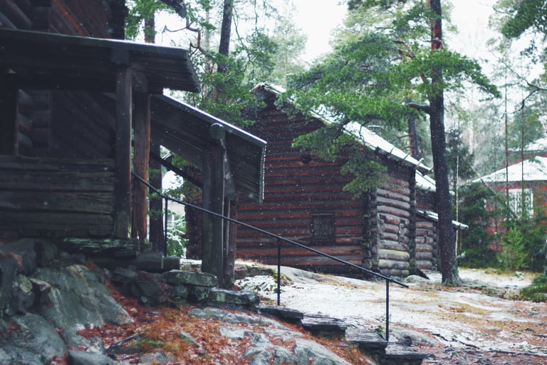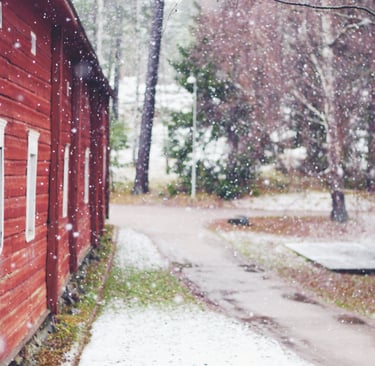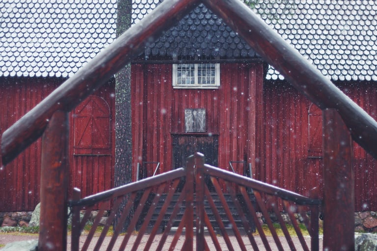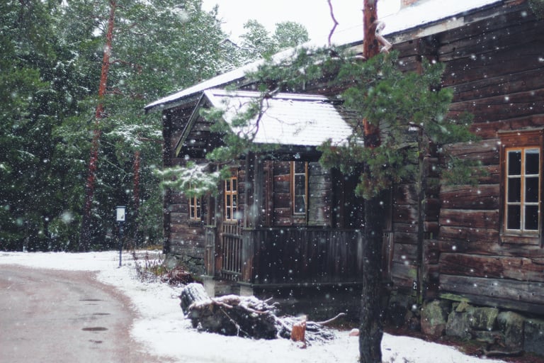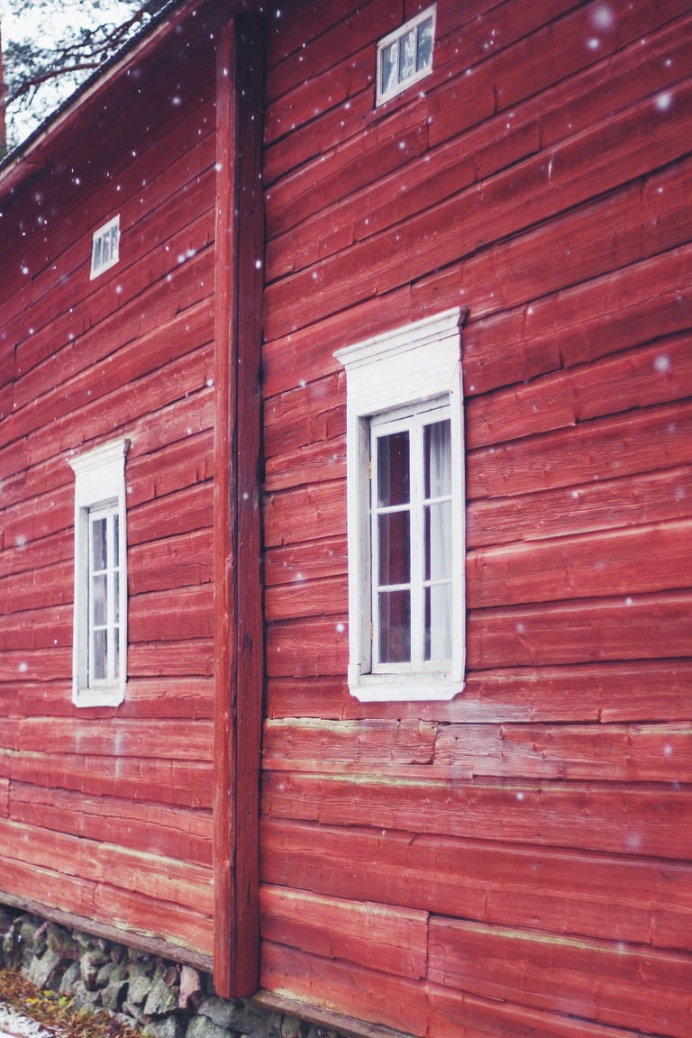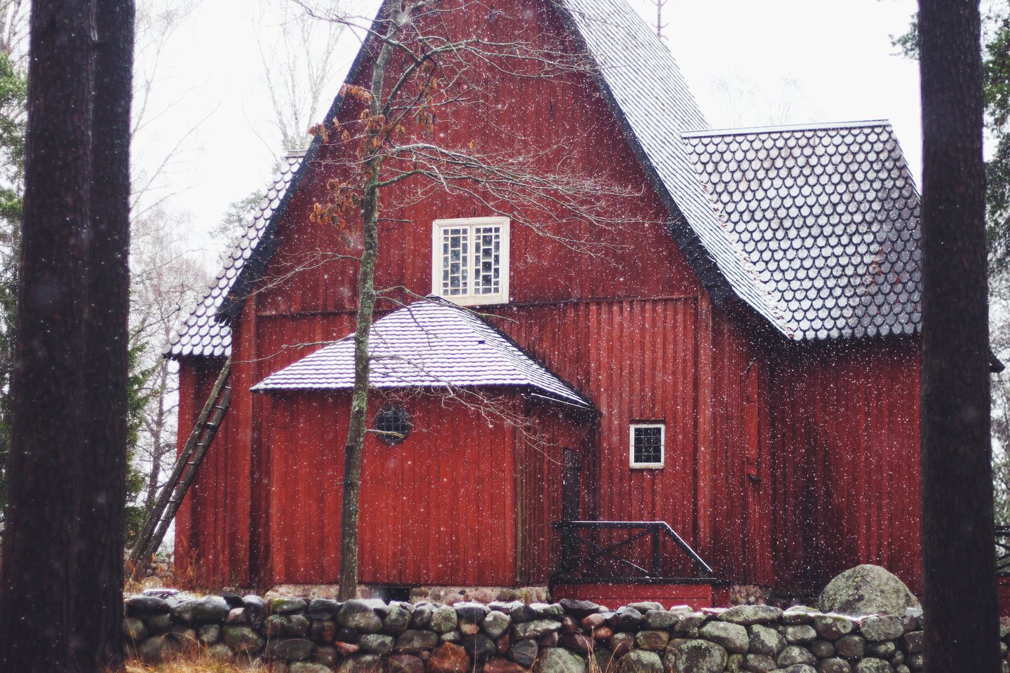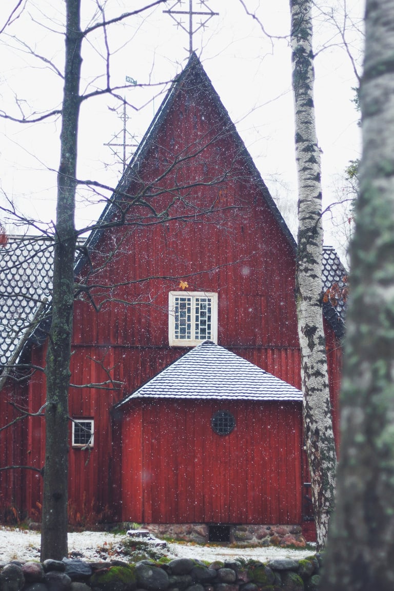 It truly was the most magical little walk, winding around some centuries-old wooden cottages, snow-capped log houses surrounded by evegreens sprinkled with tiny fluffy snowflakes. My favourite part was of course the old red barns and houses. Speaking of that, do you know why Nordic countries like Sweden, Finland and Norway have so many of these red wooden houses? Scroll down to have the explaination! 🏡