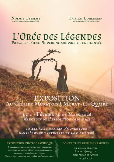 L’Orée des Légendes, c’est une exposition photographique réalisée en collaboration avec le photographe et compositeur Tristan Lohengrin. Fruit de plusieurs années d'exploration et de prises de vue dans les Volcans d'Auvergne, l'exposition propose une série d’une vingtaine de photos qui invitent à découvrir l’Auvergne autrement, entre paysages fantastiques, légendes anciennes et contes poétiques…